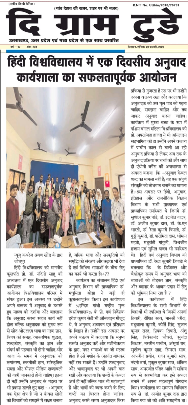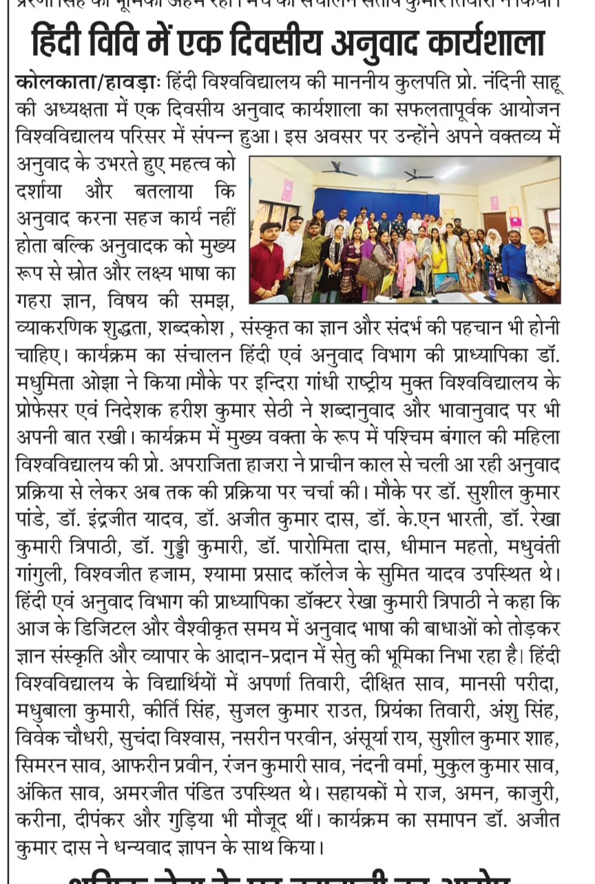 One-Day Translation Workshop Organized by Hindi University, West Bengal |