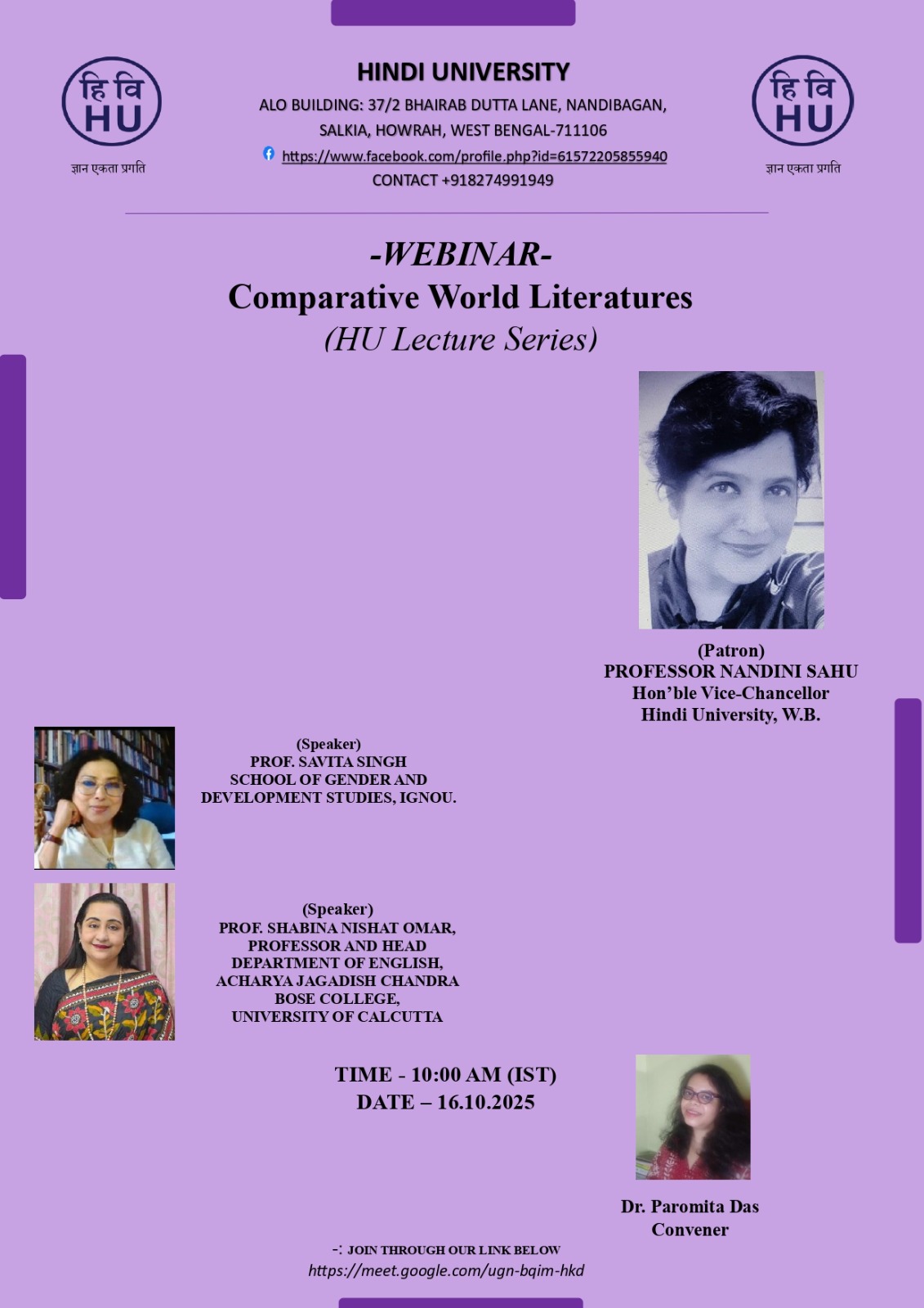 HINDI UNIVERSITY, WEST BENGAL,SPECIAL LECTURE SERIES. |